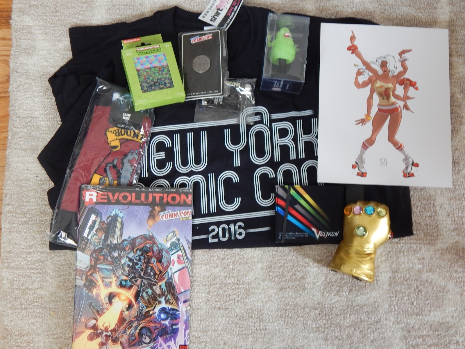 Slimer glows in the dark and the TMNT laces will look great on my converse sneakers. The black NYCC t-shirt was a cool addition to have since I’m going to NYCC this year.