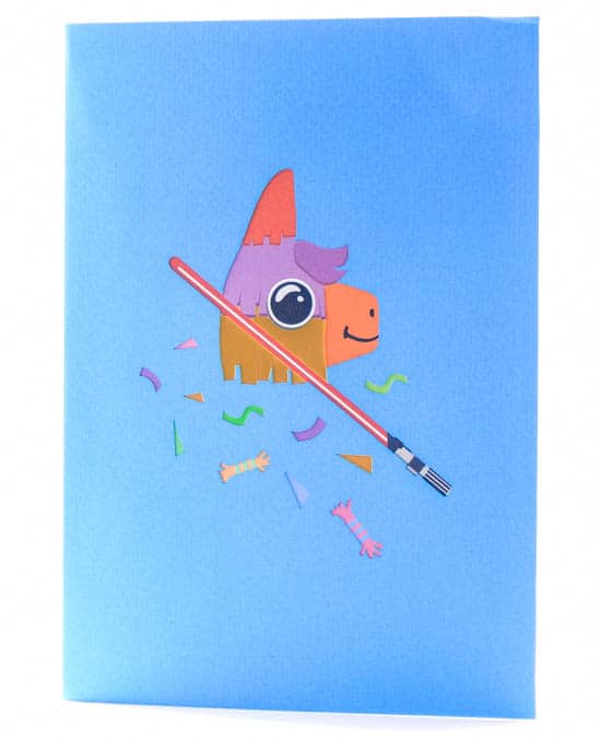 I was rushing through New York Penn Station one Friday and I saw the Lovepop Cards stand. I never really noticed the stand before, but they had some very cute 3D Cards. Then I saw Darth Vader fighting a piñata. Yes, that card came home with me! Darth Vader Celebration Card is a delight.